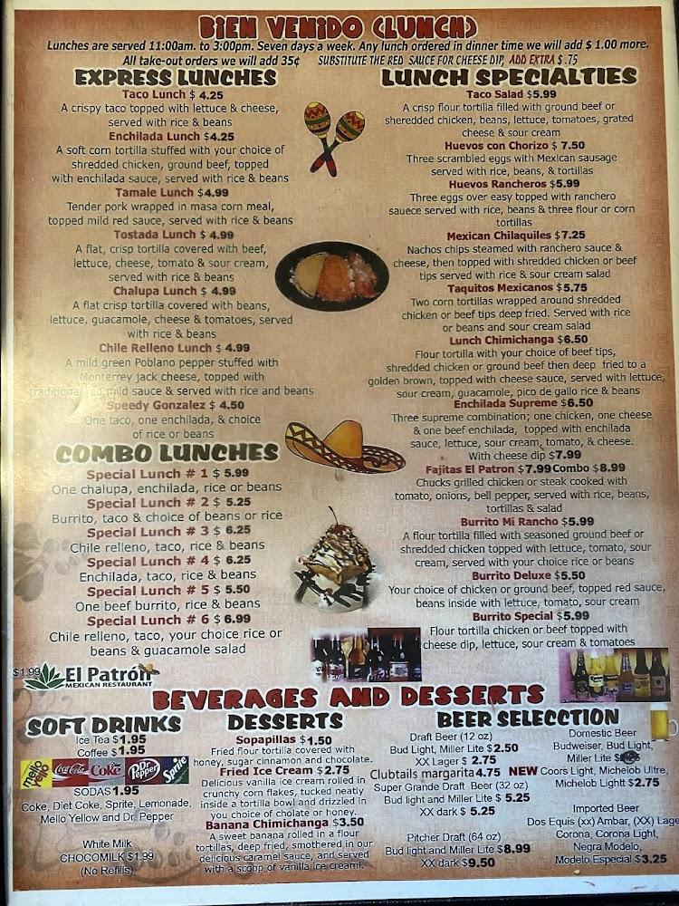 El Patron features a diverse menu that includes traditional favorites and memorable local specialties. Popular items consist of street tacos, enchiladas, and a variety of fresh seafood dishes. The culinary approach emphasizes using quality, fresh ingredients to bring authentic flavors to life.
